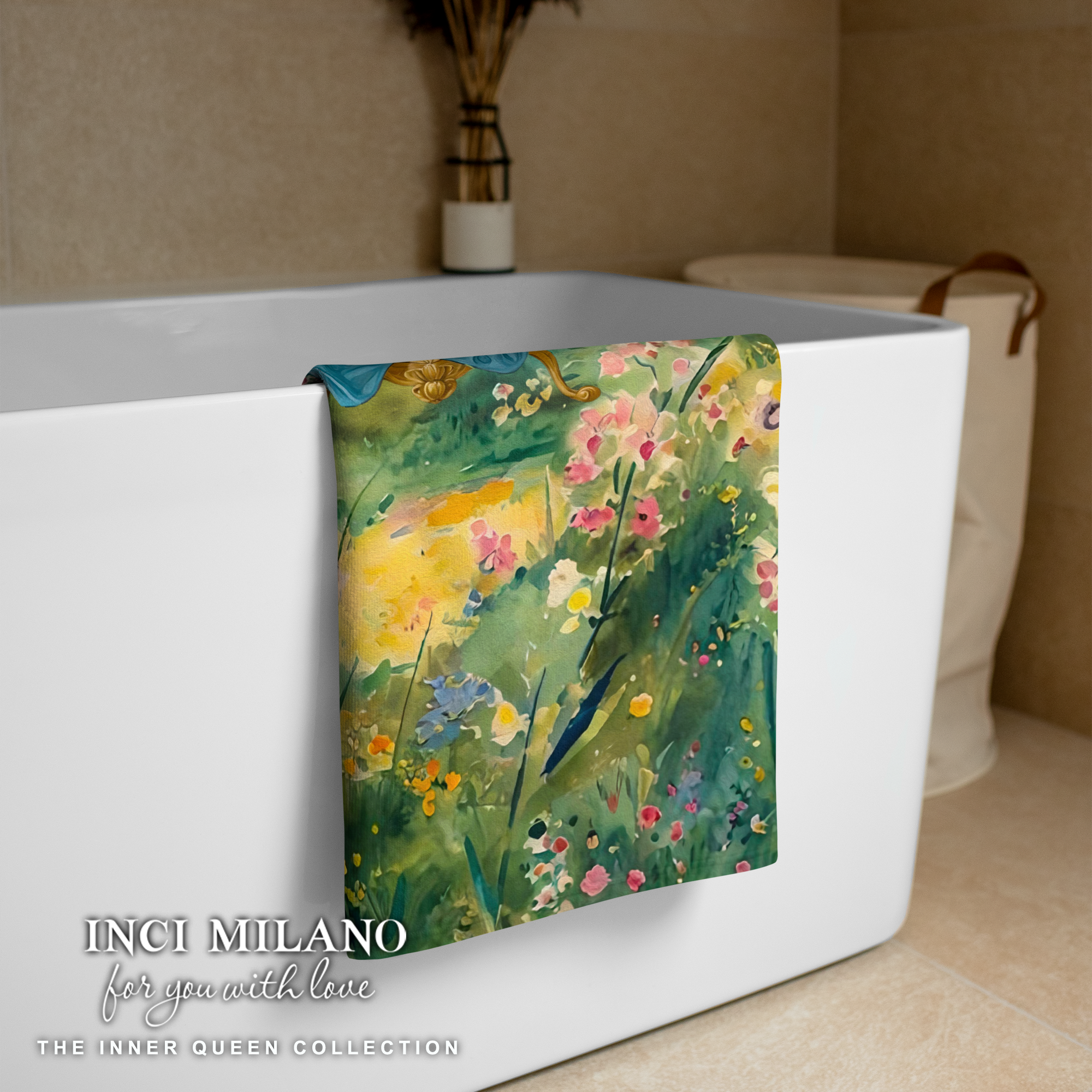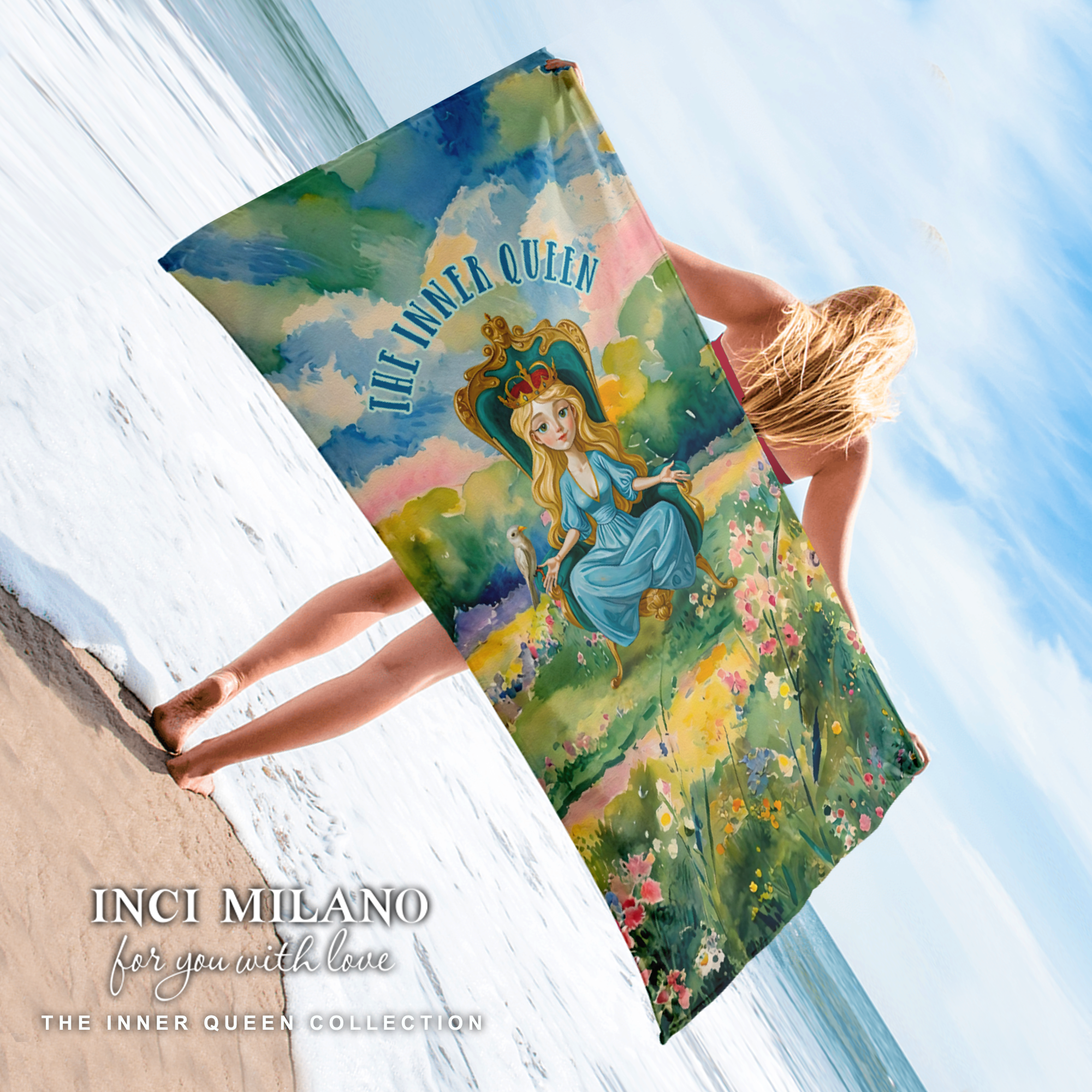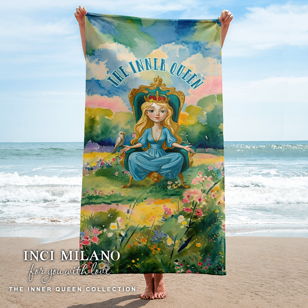 Wrap yourself up with this super soft and cozy all-over The Inner Queen towel.